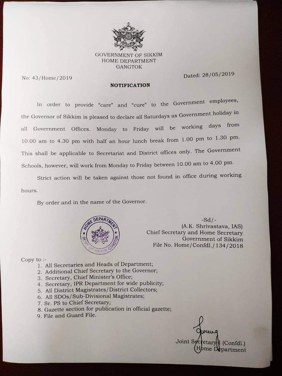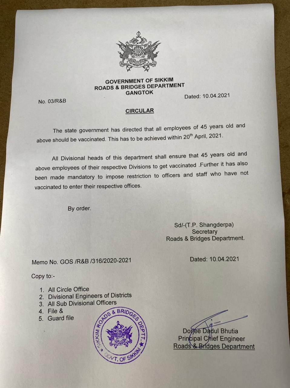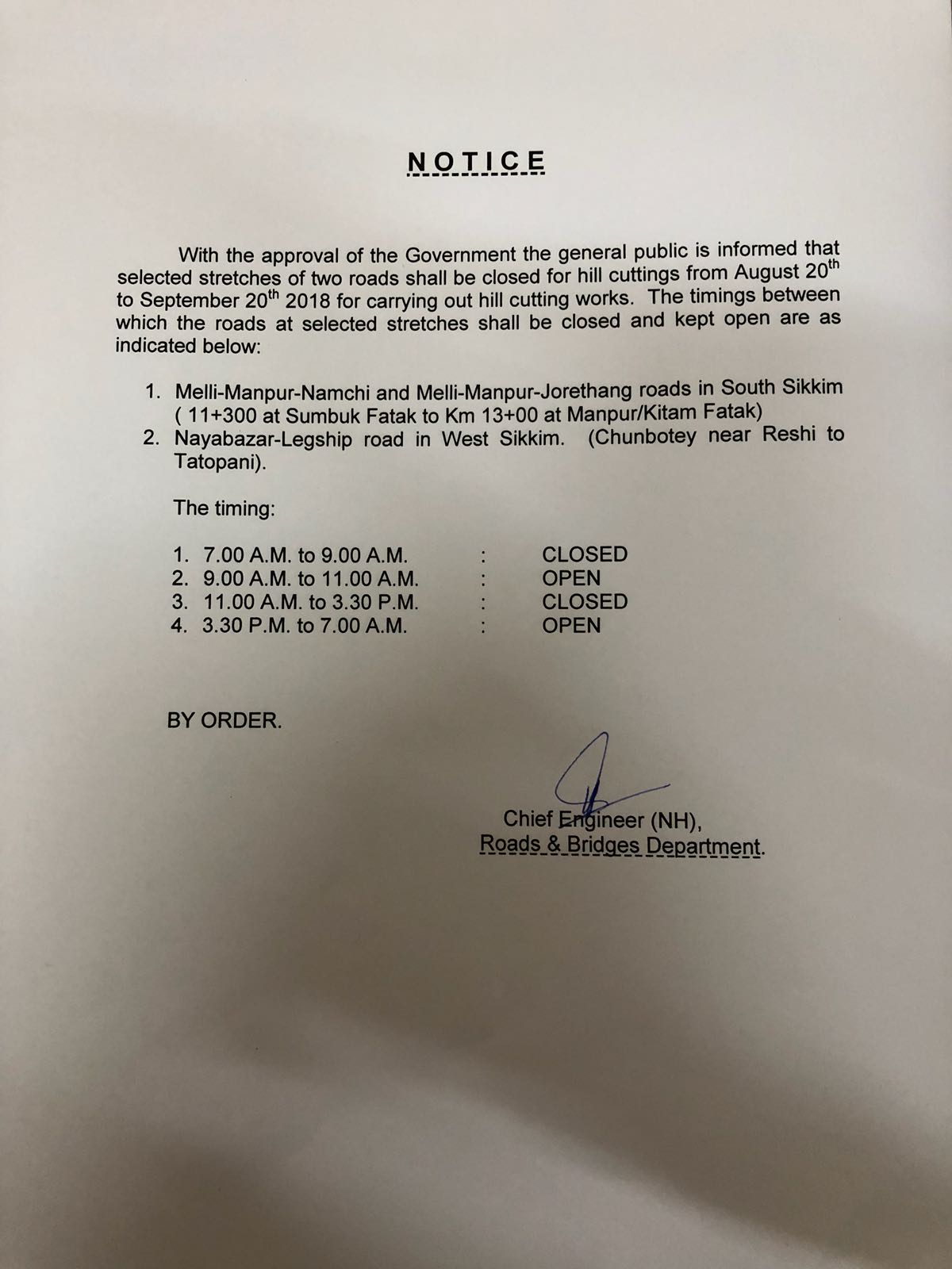 Memo No.229/GOS/FEWMD. Dated: 11/3/2015. Notification - Sikkim Forests, Water Courses and Road Reserve (Preservation and Protection) Act, 1988. |